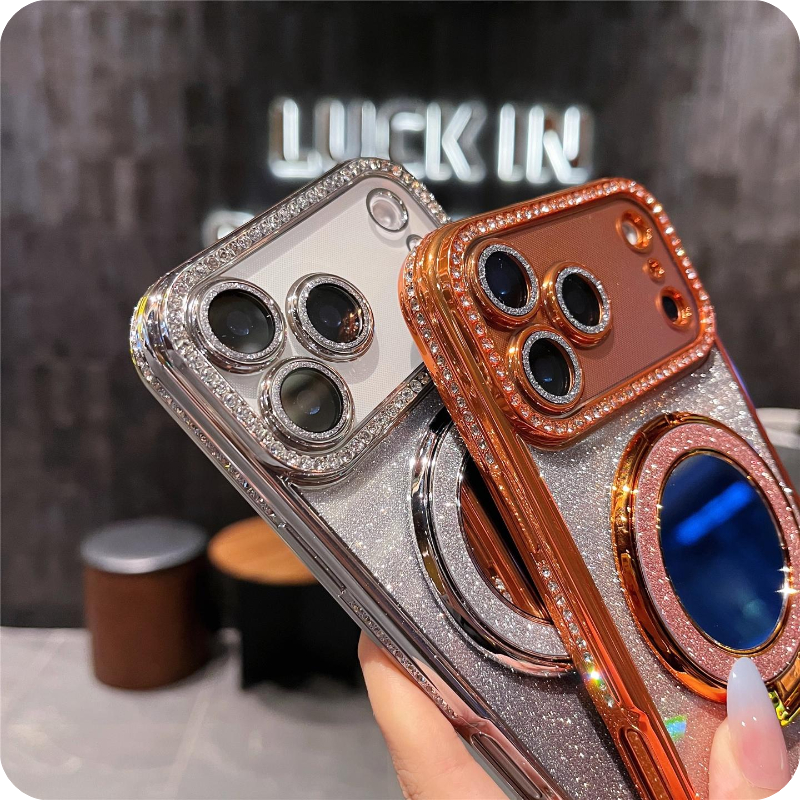 Gradient Diamond Glitter Mirror Stand Case for iPhone Series