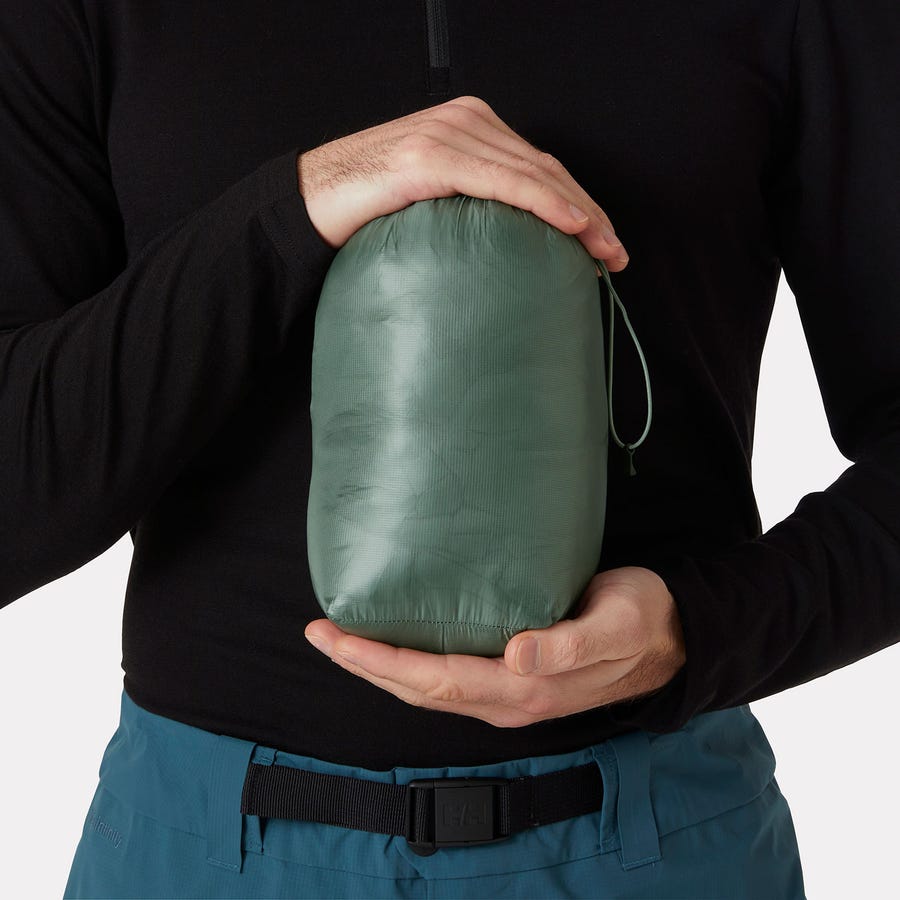 Because our Men's Odin Everdown Hooded Jacket is built for alpine hiking and mountaineering professionals, warmth, low weight, and small pack size are at the heart of every design choice. A winner of a 2023 ISPO Award, it's uniquely constructed with a high-quality down sheet instead of loose feathers to ensure there are no cold spots. The insulated hood with elastic helps you stay warm while reducing overall bulk and weight. The hem and cuffs are also elastic for warmth and reduced weight. A lightweight and flexible RECCO reflector is integrated in the brim for outdoor safety and searchability. This lightweight men's down jacket is packable in an included stuff sack for convenient storage. The jacket is made with recycled materials. See composition for details.