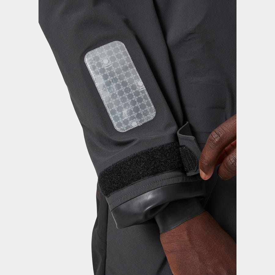 The Waterwear drysuit is developed with insight from professional sailors. The design has been tested in the harshest conditions. It's protective and warm gear you can wear when the waves are sending ice-cold water. Utilizing our 3-ply, seam-sealed Professional waterproof, breathable and windproof system, it withstands the harshest conditions and prolonged use. It features latex-sealed neck, cuffs and socks. You can customize the fit with an adjustable waist, adjustable cuffs and internal braces – also known as suspenders. We added reflective elements for safety. A diagonal zip gives you easy on and off.